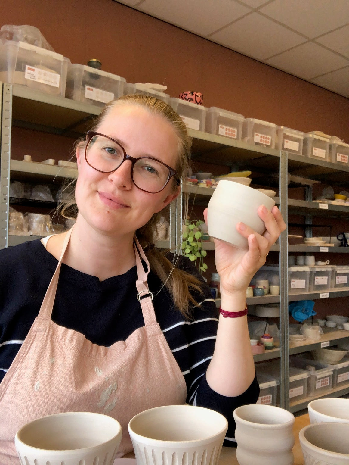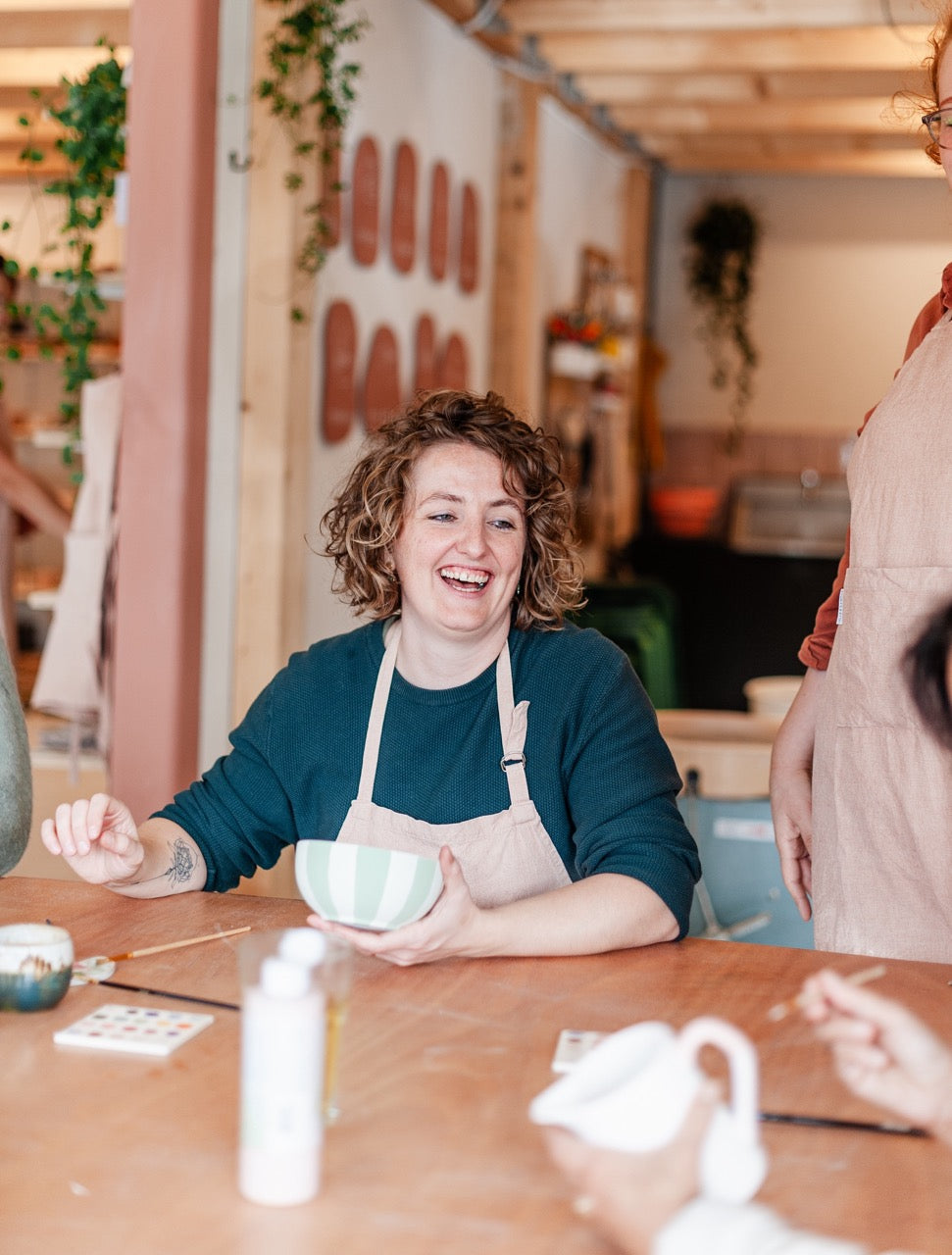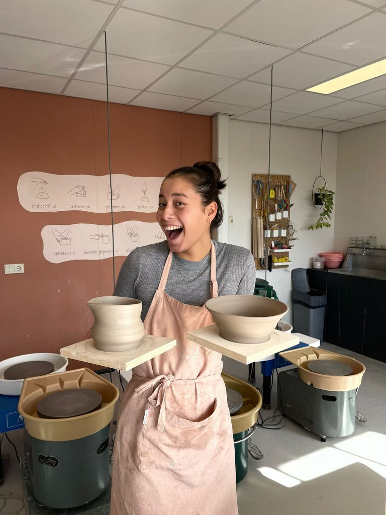 Als klein kind volgde ik een boetseercursus en dat gevoel van handen in de klei is altijd wel ergens blijven kriebelen. Toen ik, inmiddels zo'n 20 jaar later, KLEILOKAAL ontdekte heb ik meteen een cursus handvormen geboekt, werd daar héél gelukkig van, en ben hier sindsdien kind aan huis!