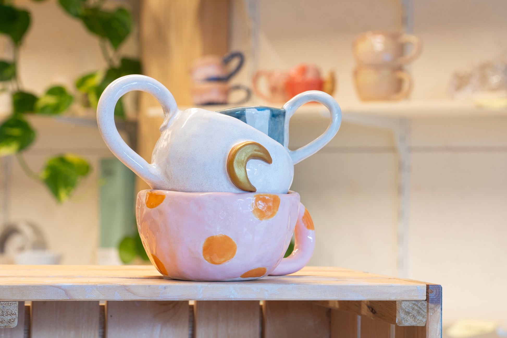 In deze workshop gaan we van een bolletje klei een mok maken - ja, echt! We maken een 'pinch pot' en daaraan bevestigen we een oor, en misschien nog wel iets extra's als versiering als je dat leuk vindt. Denk aan een ster, een smiley, een voetbal of een hartje.